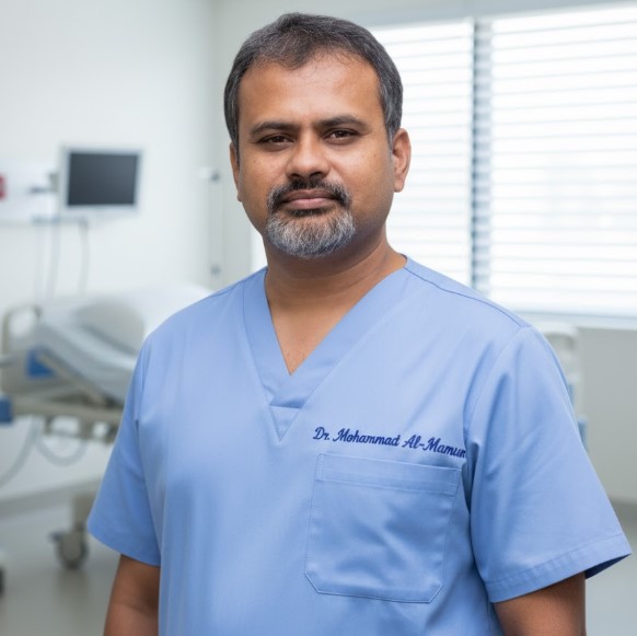 Dr. Mohammad Al-Mamun brings extensive expertise in general and laparoscopic surgical procedures with specialized training in cancer surgery, plastic surgery, and advanced surgical techniques from NICRH.